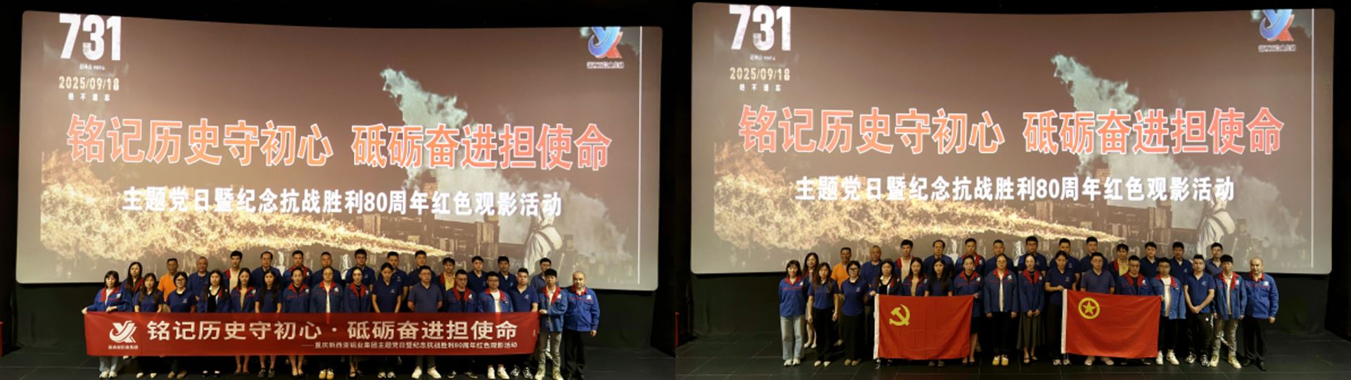 金秋九月,為紀念中國人民抗日戰(zhàn)爭暨世界反法西斯戰(zhàn)爭勝利80周年,深化愛國主義教育,9月28日下午,新西亞鋁業(yè)集團黨支部組織開展了一場意義非凡的主題黨日活動。公司全體黨員、入黨積極分子、特邀人員及青年員工代表近40人齊聚一堂,共同觀看了紅色電影《731》。